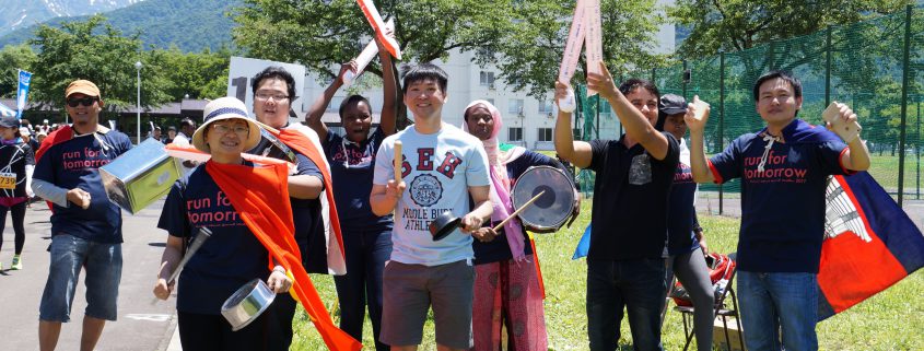IUJ was the 7th Aid station of the half marathon race, students supported the water supply and many members of the IUJ community came out to cheer the runners who included IUJ’s some faculties, students and staffs.