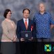 The audience was then addressed by Masaaki Shirakawa, the 30th Governor of the Bank of Japan and professor at Tokyo’s Aoyama Gakuin University. He spoke about his professional career as the Governor of the Bank of Japan during some tough financial times, particularly the Global Economic Crisis of 2008. Making decisions with integrity was a key to Japan weathering the economic storm of that period, and he emphasised the importance of this to students when it comes to making decisions in their own professional careers.