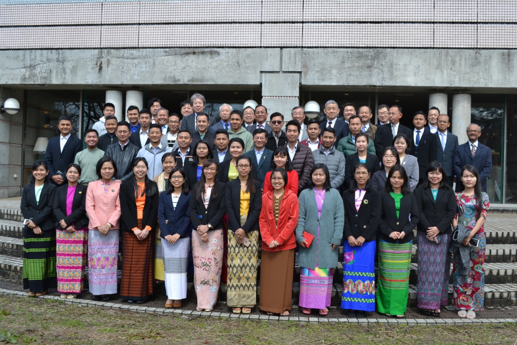 At the invitation of the Nippon Foundation, a Myanmar delegation led by Union Minister for Border Affairs Lt. Gen. Ye Aung paid a visit to Japan to study the Japanese educational system as well as to discuss further cooperation between the Nippon Foundation, the Ministry of Border Affairs and the International University of Japan. During the tour, the minister visited the IUJ campus and met IUJ President Hiroyuki Itami, Vice President Noboru Yamaguchi, and students from Myanmar who were wearing traditional “longyi”, and all participants enjoyed a harmonious welcome party. We have implemented training programs for officials of the Ministry of Border Affairs, granted by The Nippon Foundation and will hopefully continue to do so, so that we can contribute to Myanmar’s human resource development.