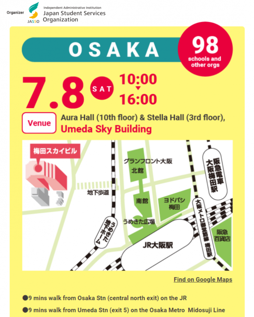 IUJ is participating in the College Guidance Fair for International Students in Osaka, July 8th