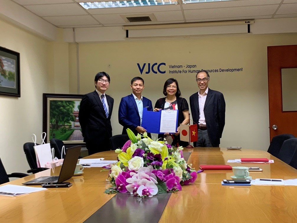 設立の経緯として、国際大学は、2018年1月に学長が、同11月に理事長がVJCCを訪問し、それぞれの活動実績や今後の方向性について意見が交わされ、お互いの協力の下で、両機関の日本及びベトナムにおける、より一層の発展が望めることで一致し、今回の同意書の署名に至りました。