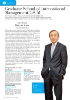 Graduate School of International ManagementDean and Professor,Graduate School of International ManagementKimio KaseGraduate School of International Management (GSIM)The Graduate School of International Management was founded in 1988 as Japan’s rst graduate school of management with a fully-edged MBA program taught in English and is widely recognized as one of the most prestigious business schools in Asia.With the objective of developing tomorrow’s global leaders, the Graduate School of International Management (IUJ MBA Program) was established as the first business school program taught in English in Japan with cooperation from the Amos Tuck School, Dartmouth College. Our community, comprising about 330 students at the Graduate School of International Management (GSIM) and the Graduate School of International Relations (GSIR) as well as faculty and staff, is diverse, multinational, multicultural, and multiethnic. The career paths represented within our student body are also diverse. Classes emphasize practical educational methods, such as case discussions, debates, presentations, and projects. They involve both individual and group work. Moreover, the importance accorded to active participation and simulations helps ensure students acquire skills and knowledge useful for real-world decision-making. GSIM students can take GSIR courses, which give them opportunities to explore global issues such as environmental topics, poverty, and other forms of inequality, and familiarize themselves with techniques and approaches for identifying solutions. Such knowledge will help them in their subsequent careers in the private sector when working in collaboration with government and civic organizations, and moreover, contribute to the emergence of a sustainable society. The high quality of IUJ’s educational and research environment is widely recognized, as reflected in IUJ’s MBA Program being the only such program in Japan to be included in The Economist’s “Global Top 100 Business Schools”.Kimio KaseProfessor, Graduate School of International ManagementDean's MessageIMBA Program(One-year program)●Master of Business AdministrationThis intensive one-year MBA program is designed for people who have, in principle, at least five years of work experience and specialized knowledge. It prepares students for careers in global management.Program OverviewMBA Program●Master of Business AdministrationThe IUJ MBA offers a multidisciplinary curriculum covering finance, marketing, development, production, management, IT, human resources management, etc. Upon completion of the core courses, students select courses according to their professional goals. IUJ graduates are noted for their aptitude in solving practical management issues in a multinational environment. E-Business Management Program(One-year program)●Master of E-Business ManagementThis one-year Master’s program develops business people who can add value by applying technology. Students can take advantage of flexible course selection, including courses of the MBA programs, to suit their career plans.International University of Japan 10